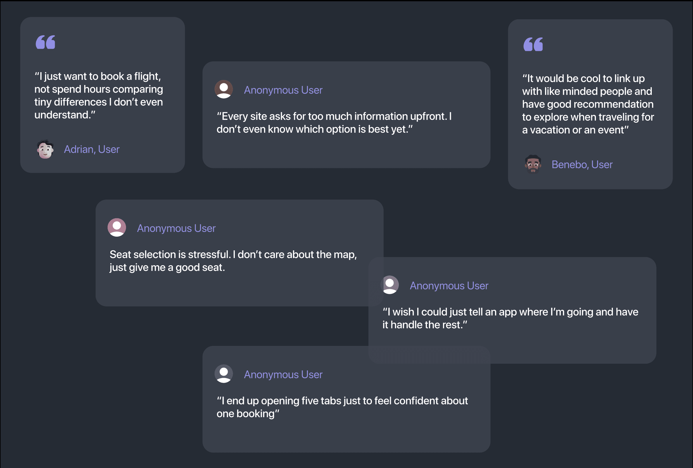 While interviewing users, reviewing travel forums, Reddit threads, and user complaints across booking platforms, several recurring sentiments stood out: